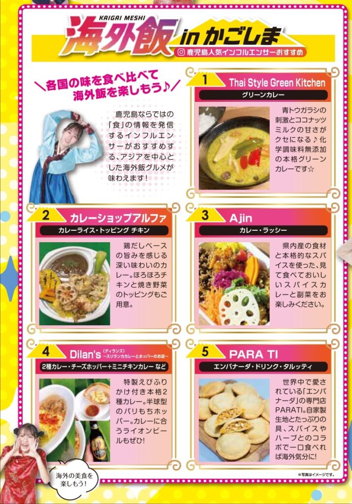 鹿児島ならではの「食」の情報を発信するインフルエンサーがおすすめする、アジアを中心とした海外飯グルメが味わえます!