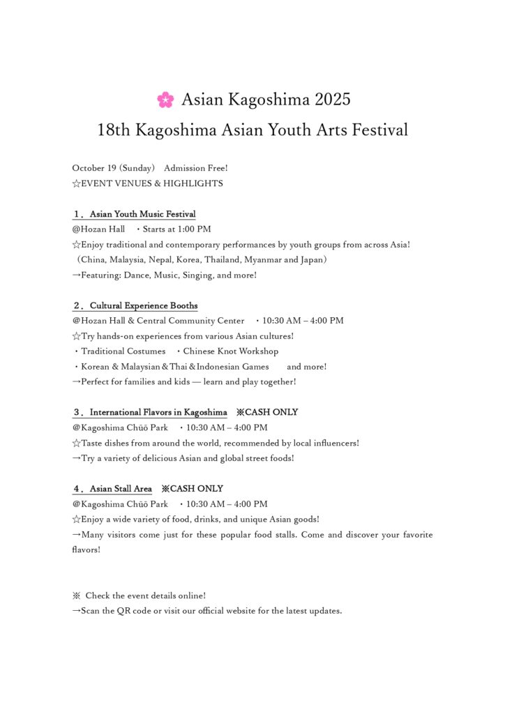 Asian Kagoshima 2025 (KAYAF:Kagoshima Asian Youth Arts Festival) – English Information