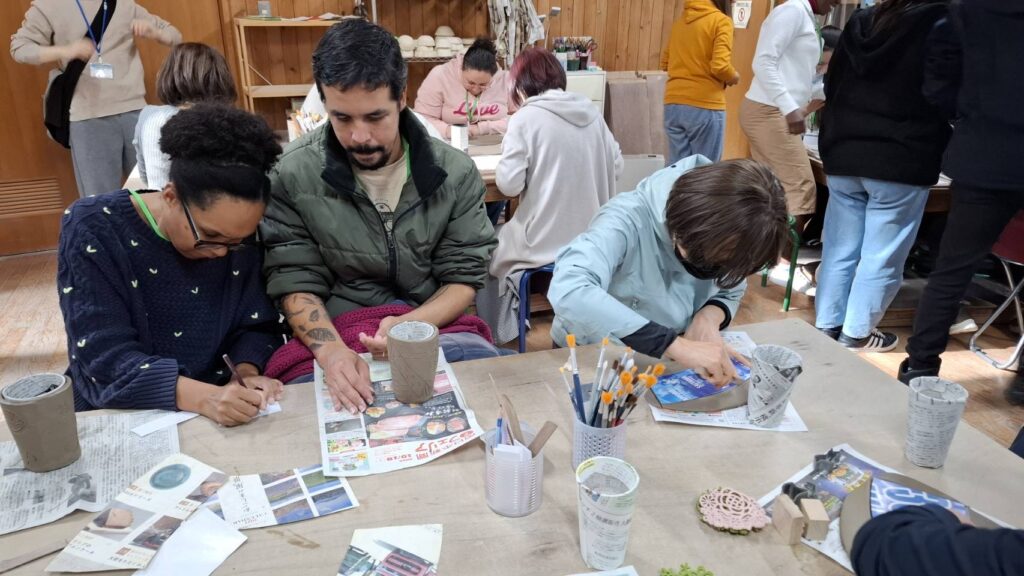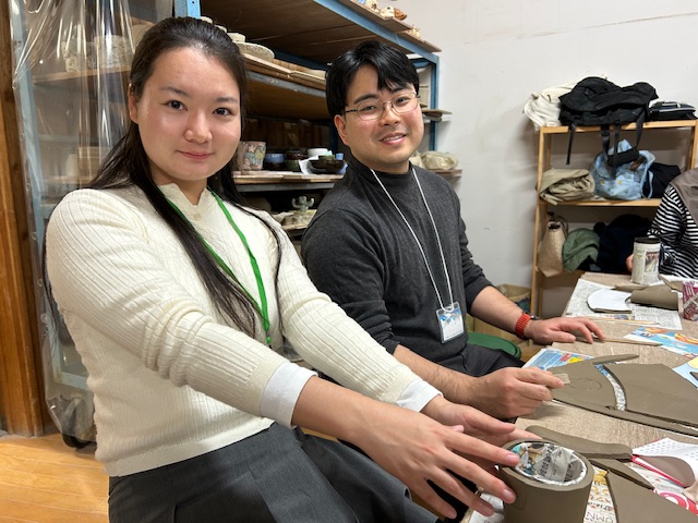 マチ探検の後は、奄美の里にて奄美の郷土料理である鶏飯を堪能し、美山へ移動。美山陶遊館では、手ひねり体験に挑戦し、オリジナルのコップ作りを行いました。形選びから模様付け、色付けまで、一つひとつの工程を楽しみ、そしてお互い交流しながら、参加者それぞれの個性あふれる作品が完成しました♪