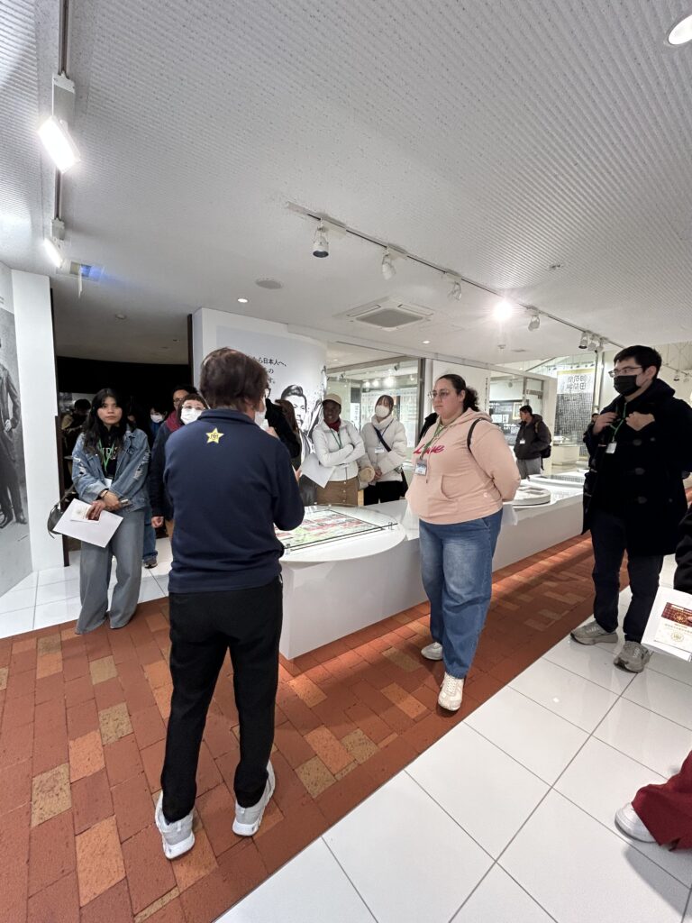 最後に訪れたのは、薩摩英国留学生記念館。マチ探検のクイズにも登場した、中央駅前の「若き薩摩の群像」のモデルとなった14名の薩摩スチューデントの留学の歴史について学びました。解説員の方の丁寧な説明に、参加者が真剣に耳を傾ける姿が印象的で、ここでも鹿児島の歴史を深く知る貴重なひとときとなりました。