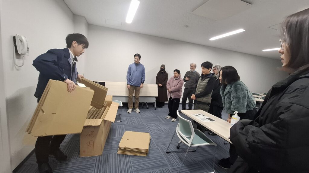 The speakers were very informative, so I learned a lot. Getting to try the cardboard bed was also fun! I think that it would be useful for there to be a website with all this information in different languages for foreigners. That way everybody can easily learn about it. Recommendations about where to buy emergency supplies would also be useful. After this, I will share information about disaster preparation with my friends. Thank you to KIEX for having this event!