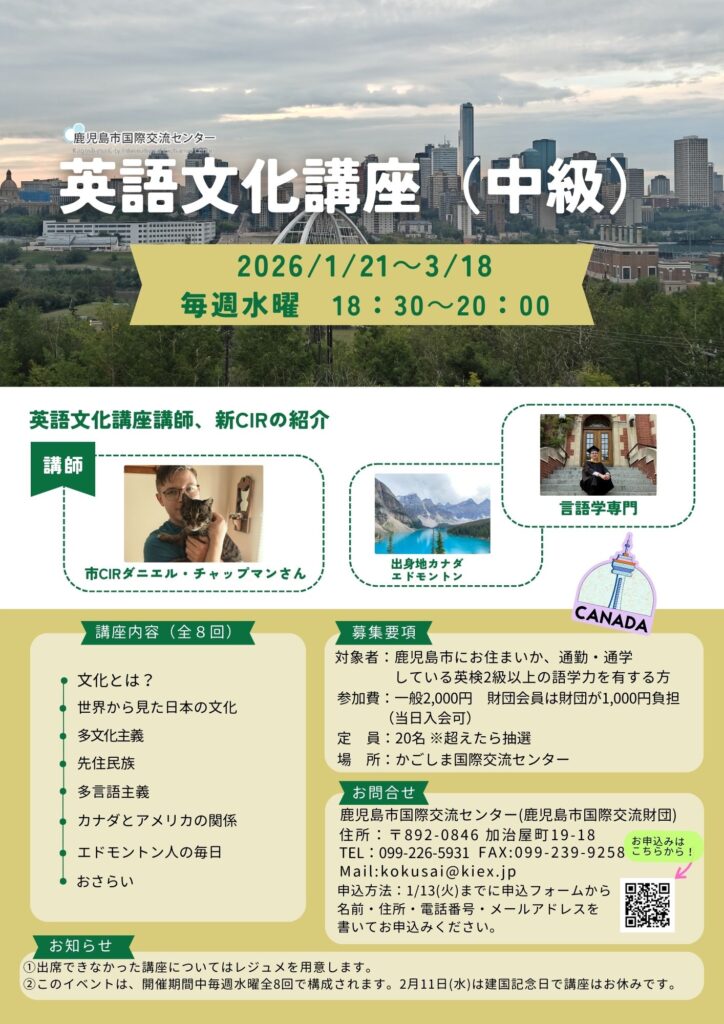 新CIRによる英語文化講座を実施します。詳細は下記からご確認ください。